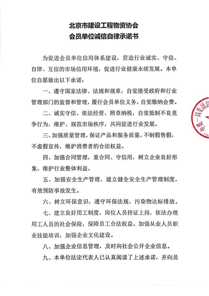 您当前所在位置:主页  > 诚信建设 > 承诺宣言 > 中建一局集团建设发展有限公司承诺宣言