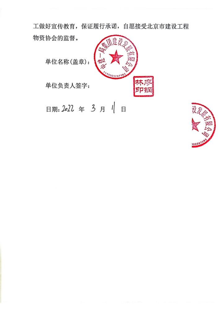 中建一局集团建设发展有限公司承诺宣言