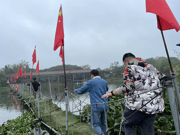 烧烤活动开始前先来个热身,过吊桥~~