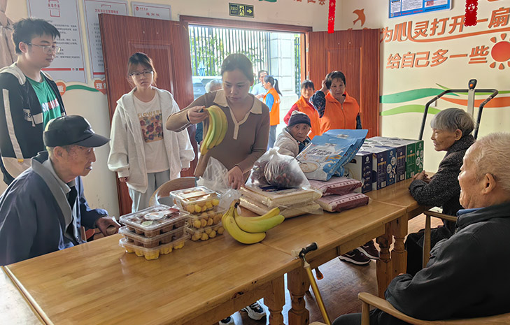 当天上午,在养老服务中心活动室,多多28志愿者为老人们递上爱吃的糕点和水果,其中一位满头白发的奶奶拉住志愿者的手,不停地唠着金华方言,志愿者耐心的回应着每一个话题,这让奶奶久久舍不得放手,甚至两眼泛起了微微的泪光,这一刻有感激,但更多的应该是期待,期待志愿者们能多个片刻的停留与陪伴